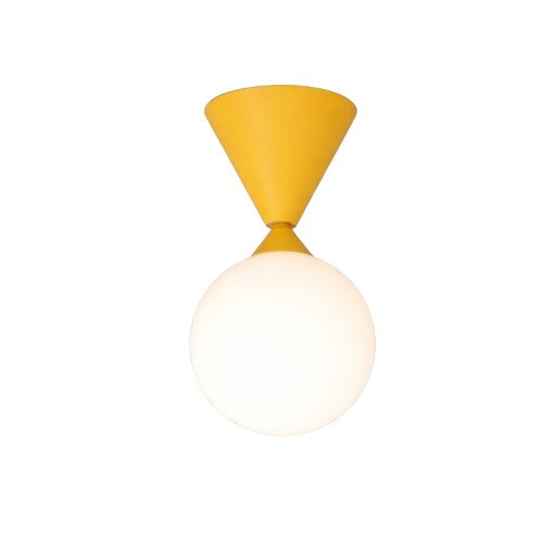 This refined yet playful wall lamp elegantly combines two timeless forms: a sphere and a cone, creating a harmonious and sculptural composition.