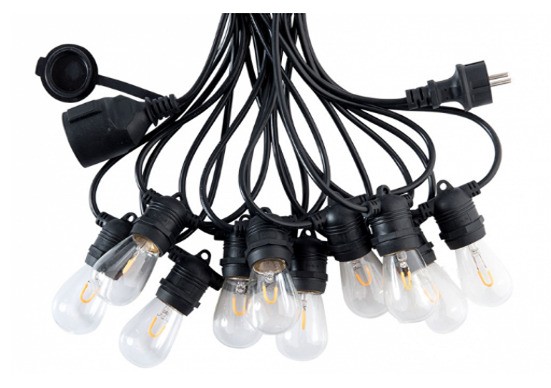 Each string is 10 meters long and features 10 glass LED bulbs of 0.5 watts with an E27 fitting. With 90 cm spacing between each socket, the lights provide a balanced and stylish illumination. Suitable for both indoor and outdoor use, the string has an IP44 rating, making it resistant to moisture and light splashes.