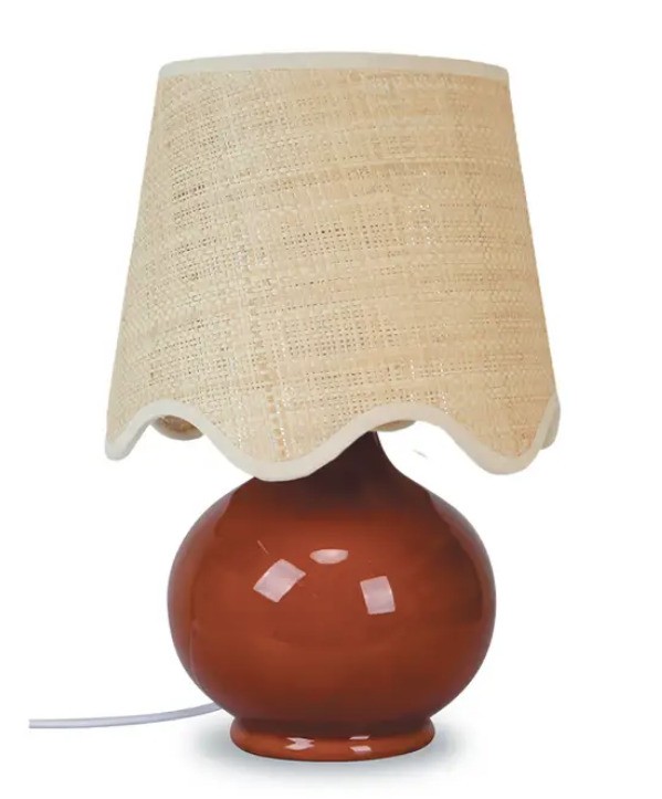 Bruin keramieken lampje met gekarteld raffia kapje