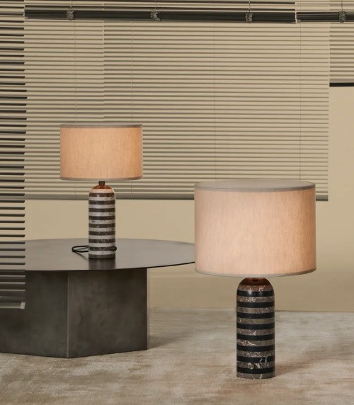 Dankzij de zachte, diffuse verlichting creëert de Gravity tafellamp een warme en uitnodigende atmosfeer – ideaal voor in de woonkamer, slaapkamer of op een bureau. Het contrast tussen de solide marmeren voet en de lichte stoffen kap maakt dit ontwerp een echte blikvanger in elk interieur.