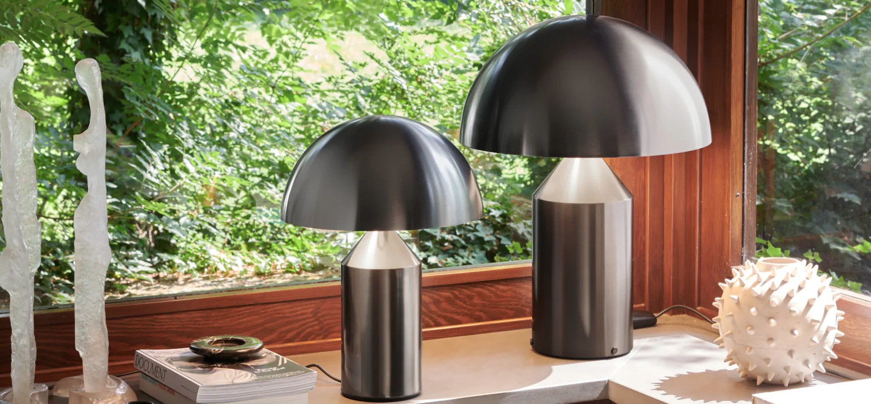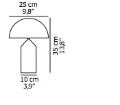 Met zijn pure geometrische vormen — een cilinder, kegel en halve bol — brak de Atollo radicaal met het traditionele lampontwerp. Het resultaat is een sculpturale tafellamp die perfect balanceert tussen verlichting en designobject.