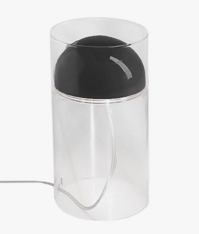In de koepel bevindt zich de lichtbron, terwijl de glazen cilinder het licht zacht en gelijkmatig verspreidt over het oppervlak waarop de lamp staat.