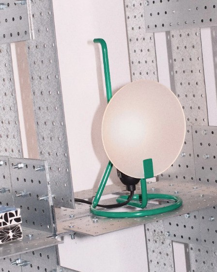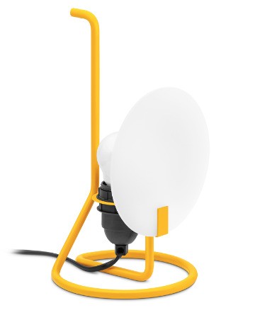 De lamp is vervaardigd uit glanzend gepoederlakt metaal en verkrijgbaar in een levendig kleurenpalet: geel, zwart, rood, groen en wit. Dankzij zijn compacte afmetingen past hij moeiteloos op een bureau, bijzettafel, nachtkastje of als sfeerverlichting in de woonkamer.